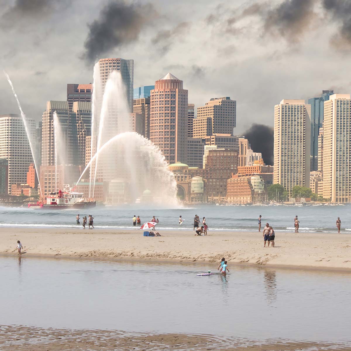 My work as a photographer is the culmination of a life-long investment in the power of art and visual culture to shape and influence social change. The power of photography that has been manipulated lies in our inclination to believe what we see in the image as a reality. These images make concrete neither reality nor the future, but one possible future. While they have an apocalyptic tone, they are inspired also by humor. Ultimately, this work is not pessimistic. I am hopeful that, as many urban planners and landscape architects are already doing, we can develop more sustainable and resilient community-oriented cities.