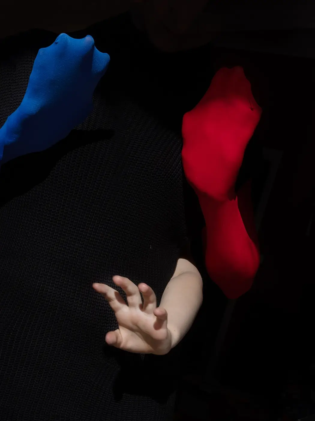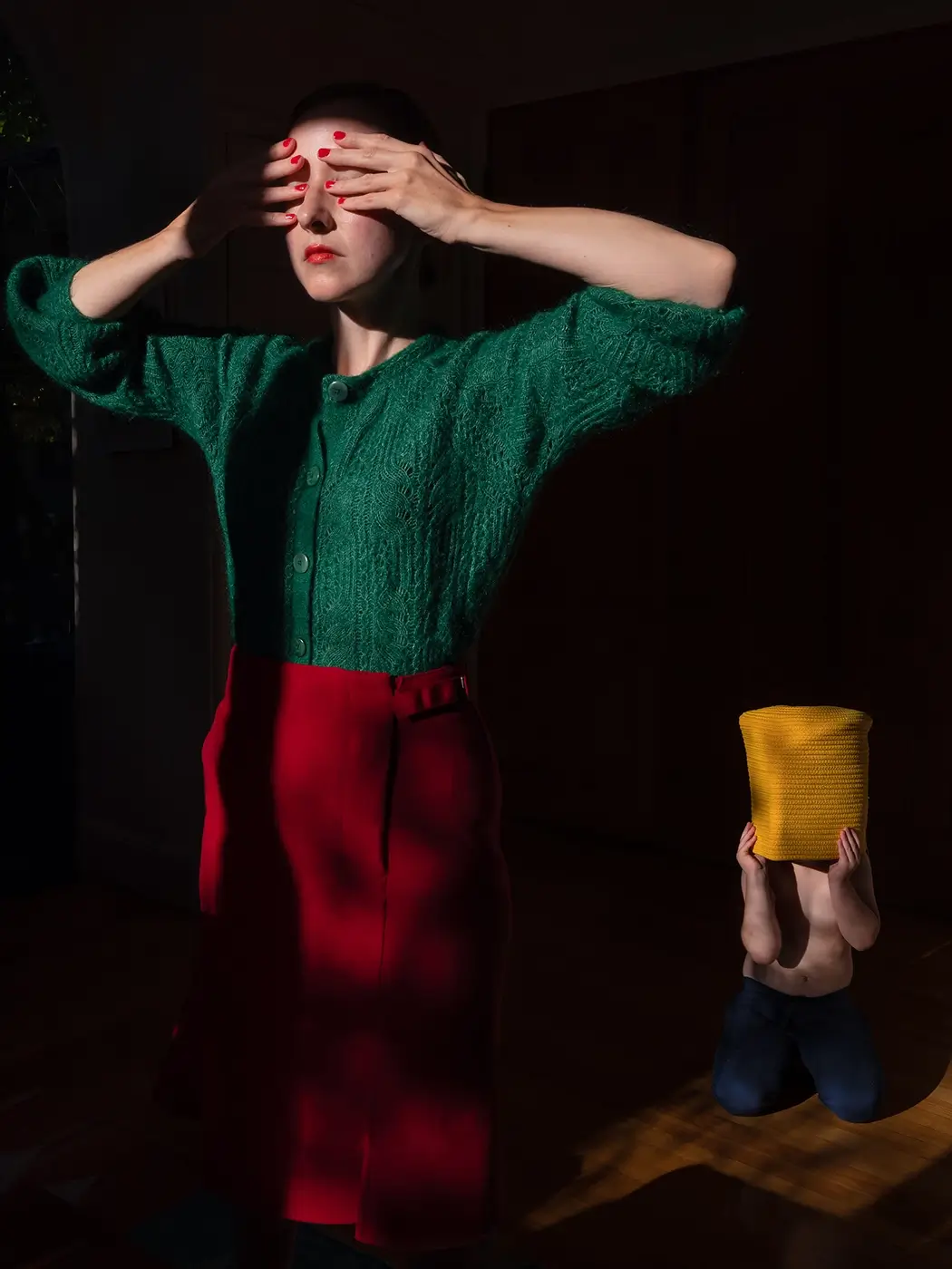 My images follow the logic of my dreams, where we are trapped in a strange colorful world, playing a never ending game of hide and seek in a labyrinth of love, care and fears, pushing against its walls, with no way to escape but wake up.