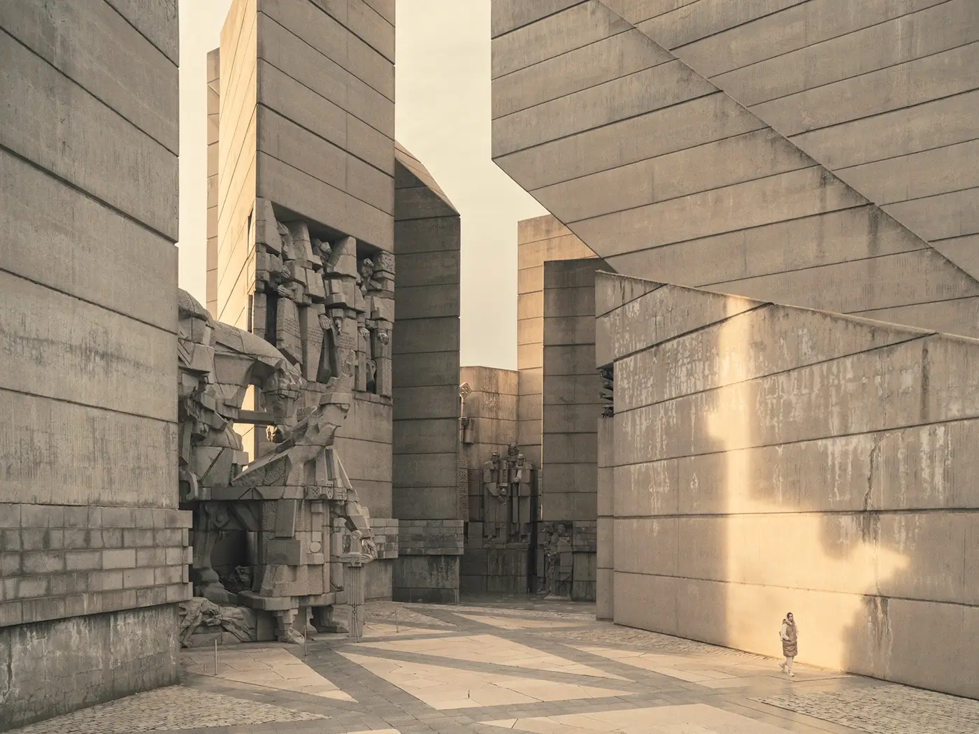 within monumental systems, seeking in every frame the fragile balance between built ambition
