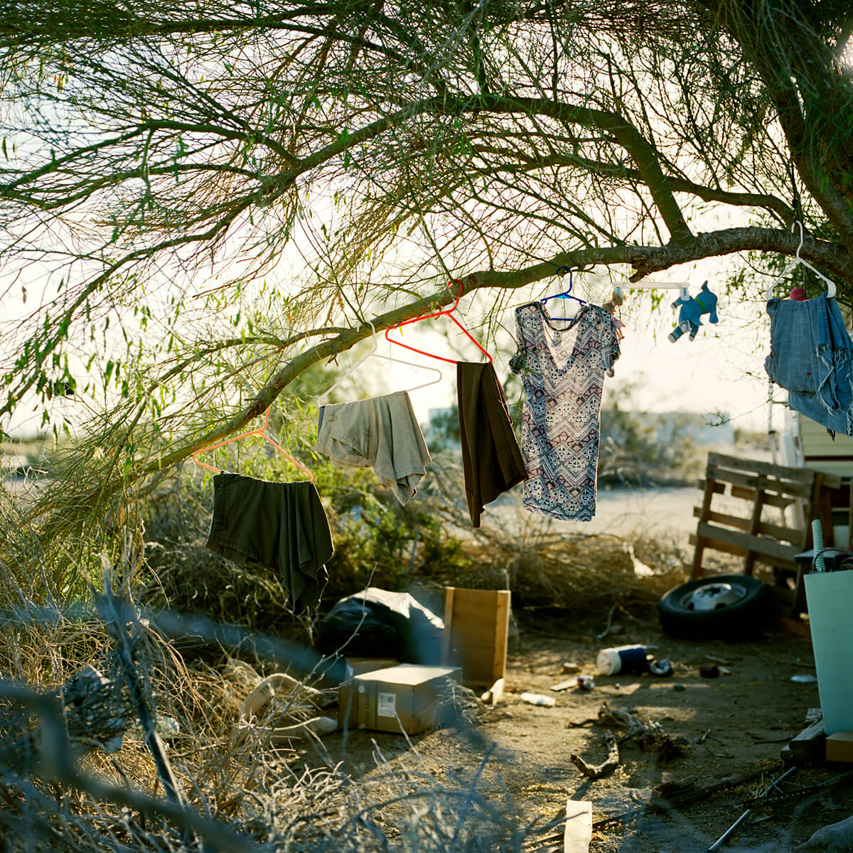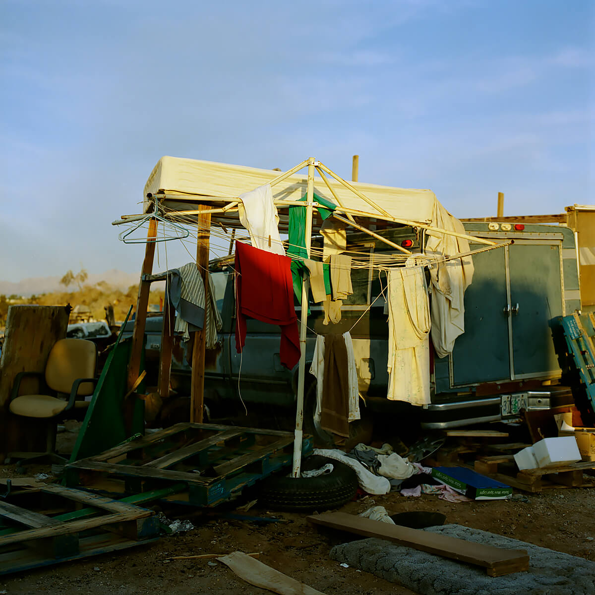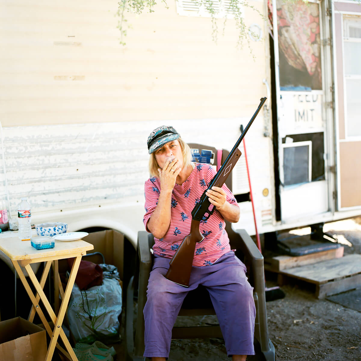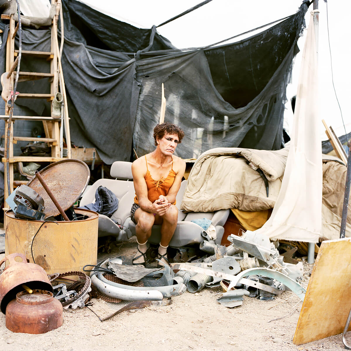 Slab City sits on the leftover infrastructure of Camp Dunlap, a WWII marine base activated in 1942 as a training camp for action in North Africa. The base also provided training areas for army troops under General Patton, a bombing range for planes from a nearby Marine Air Station, and a staging area for smaller Marine groups. It was deactivated in 1945. When the land was returned to the State, only the concrete slab foundations remained to float on the shifting sands. Slabbers have been shifting with these sand for decades; building, scrapping, repurposing, surviving, dying. They’re a motley crew, as varied as anywhere else. The year-round population is modest. Roughy fifty stay through July and August when temperatures are mercurial and even rattlesnakes seek the shade of campers. Their ability to endure inhuman conditions year after year is matched only by a shared distaste for the gridded boiler plate of city life. Many are on SSI, SSDI, or just plain broke. Modern American pioneers, claiming their slab and declaring themselves master. A free range society of feral folks occupying a chunk of desert in Southern California. Slabbers have different reasons for coming here and staying. Many are transient, coming for the warmth in winter. Some seek anonymity, others to forego the rat race. Veterans with PTSD neighbour hippies, meth heads, and Oxycontin addicts. Survivalists and religious men come to the desert to test themselves as their forefathers have for millennia. Felons hide deep in the Slabs under cover of creosote to evade the authorities. Average American families that never recovered from the Great Recession or want to stretch their retirement funds. Artists, musicians, philosophers. Few of them enjoy the conveniences we take for granted. There is no free drinkable water, no tap to turn. Slabbers can filter the East High Line canal, brown with farm runoff, or take from the faster moving Coachella Canal feeding Palm Springs and Los Angeles. Otherwise, you pay local suppliers. Garbage is either kept by Slabbers (for future reuse) or dumped for lack of municipal pick- up. Solar panels and deep cycle batteries provide power to run fans and swamp coolers in the hottest months. Sanitation varies from rvs to composting toilets and gopher holes. To each his own. There is a cost to living free.