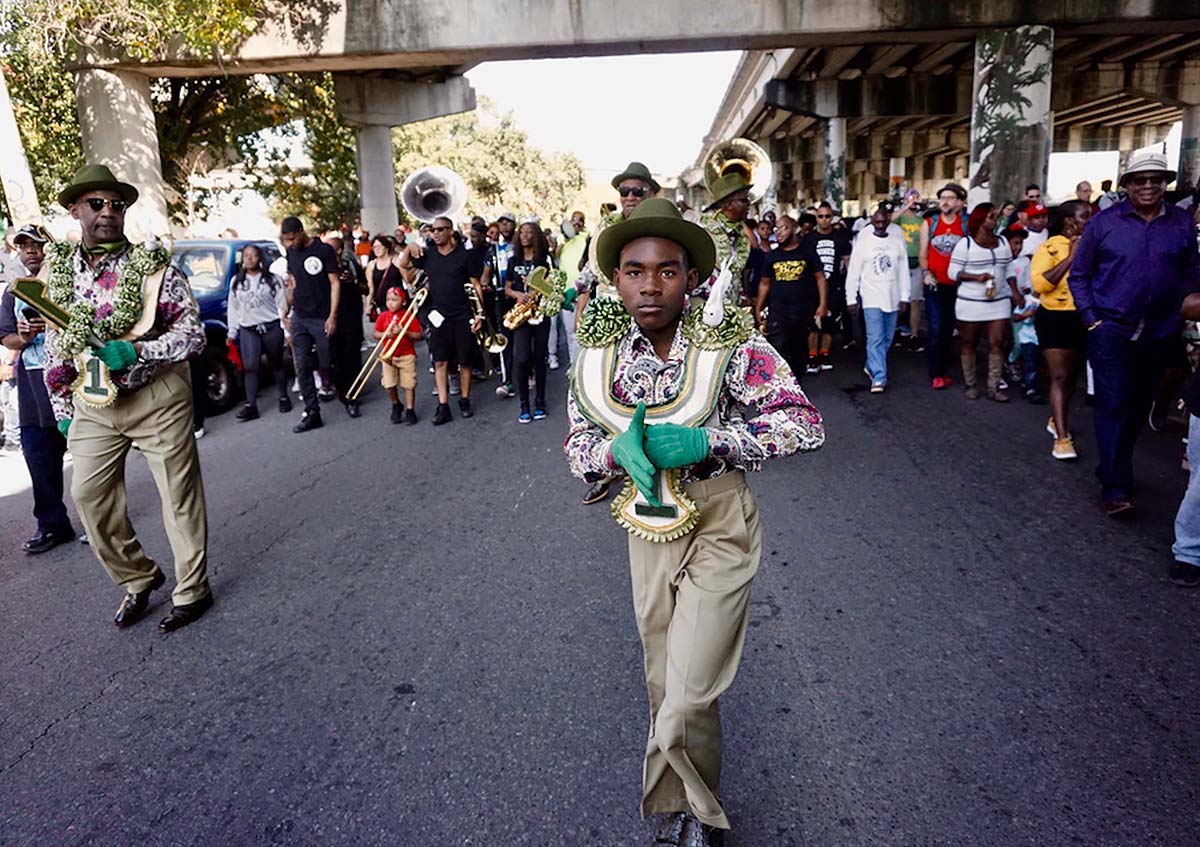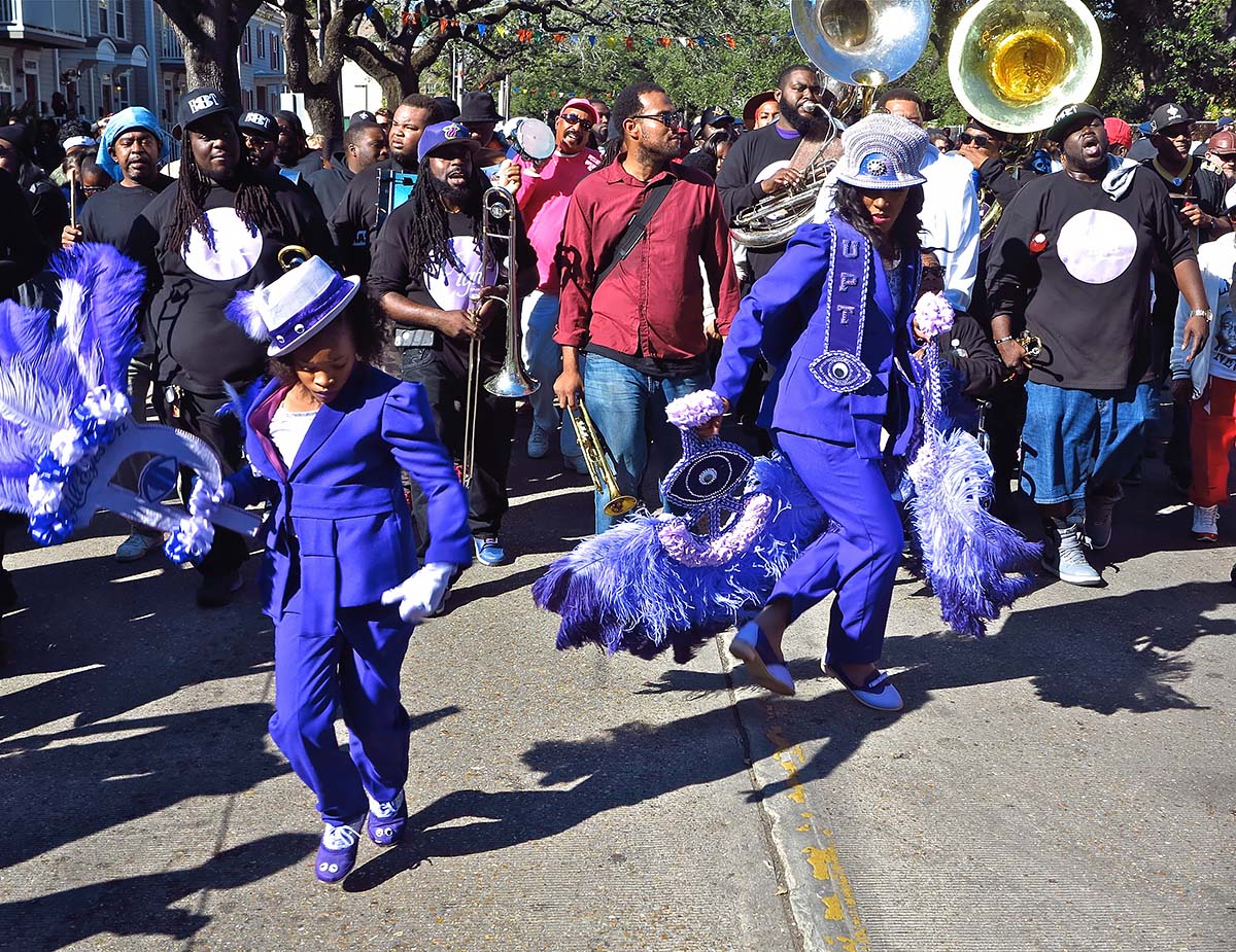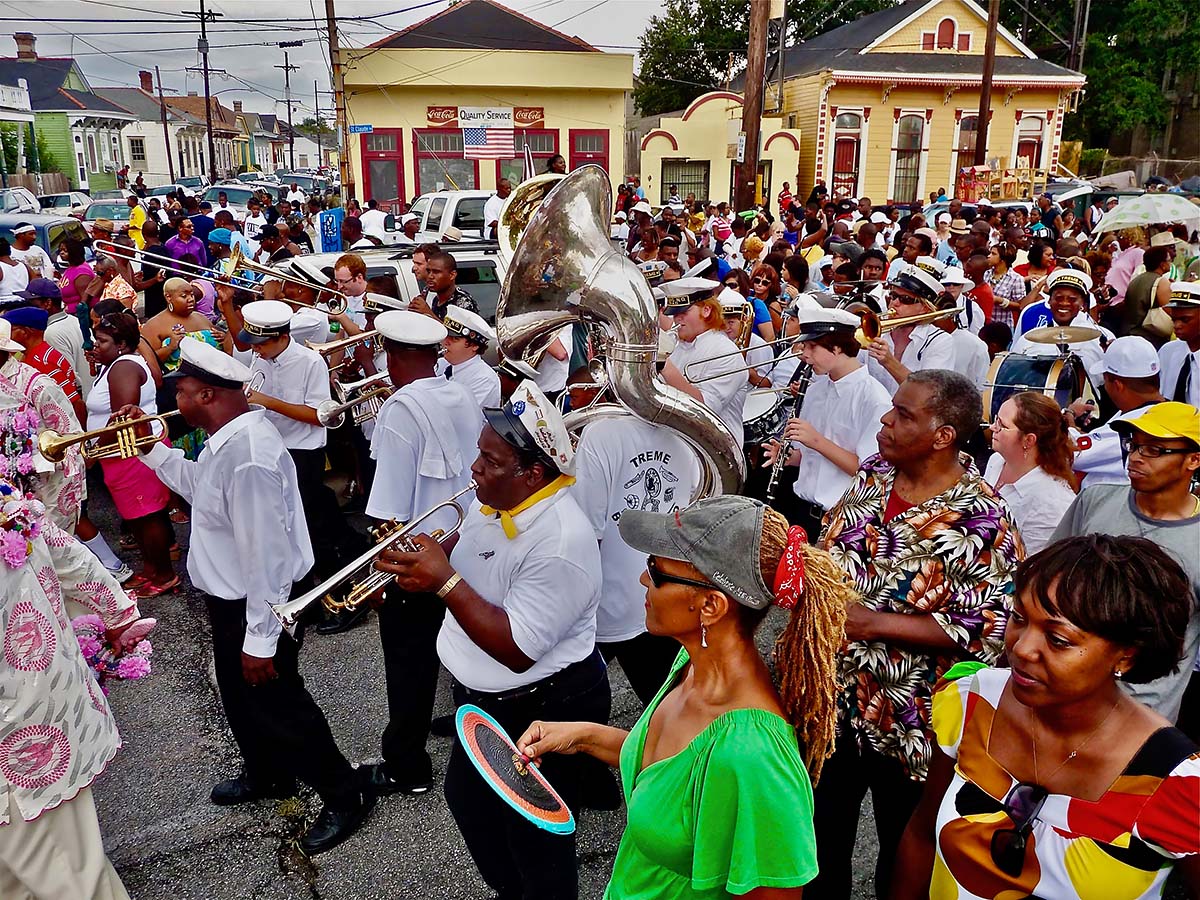 Since moving to New Orleans in 2008, I have documented and preserved a record of New Orleans' "second line" parades, thereby capturing for posterity images of a unique and vital part of New Orleans' Black cultural heritage. Although the term "second line" comes from the dancing and strutting followers of a parading brass band, it encompasses the entire parade—the brass band (the "first line," or "main line") and its followers (the "second line"). I have taken tens of thousands of color photographs of the second lines by following the weekly parades, which run most of the year, except for holidays, Jazz Fest, and the hottest part of summer—and which were canceled last year because of coronavirus when the good times ceased rolling. I have formed relationships with some of the social aid and pleasure clubs that sponsor the parades, allowing greater access and ease of navigation, resulting in varied and distinctive photographs that vividly capture the paraders' elaborate custom-designed, hand-sewn costumes and parasols, and the hundreds of dancing parade followers. The parades, rich in ceremony and ritual, exuberantly express the right of Black Americans to publicly parade, not always a given in the American South when parading began in the late 1800s. As paraders move through New Orleans neighborhoods, they are carrying on a vibrant cultural and artistic tradition. My photographs reveal the festive mood of these sacred moments of cultural celebration and seek to transmit through the art of photography the joy and vibrancy of the second lines.