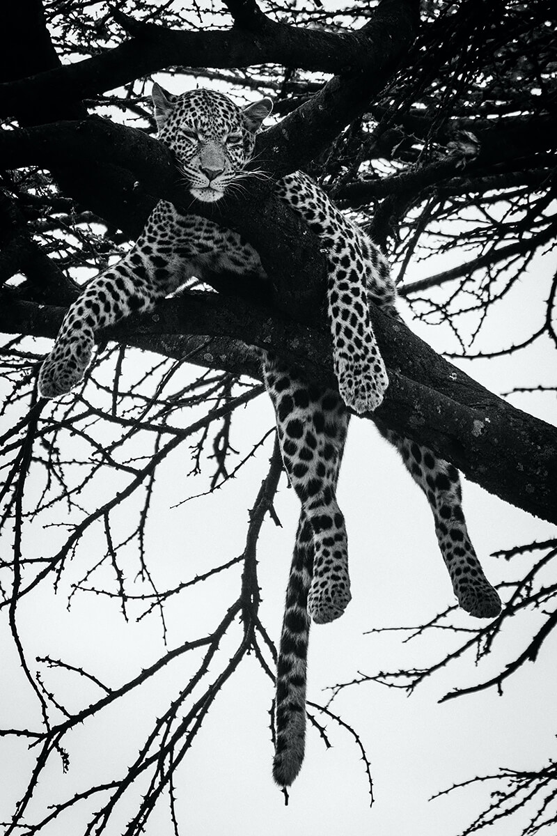 Elephants' silhouettes, a contemplative lion, a lazy leopard, a laughing hyena or a hippopotamus hidden under the aquatic grasses, his images are first and foremost the reflection of an incarnation. Through his singular approach entirely devoted to the subject's personality, Laurent brings us closer to animals in spite of ourselves because he allows us to see them as sensitive individuals; entirely focused towards their survival and that of their species, inevitably confronted with the greatest extinction of our history, undeniable consequence of the madness of men.