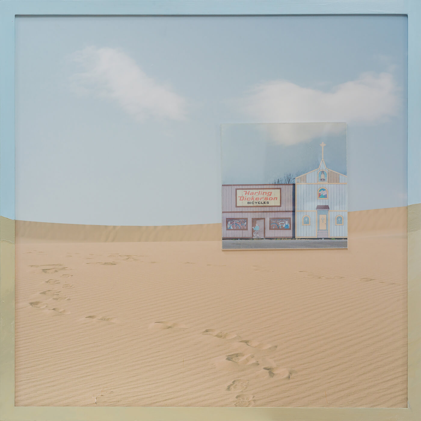 The constructed world behind the acrylic is literally protected, while the landscapes remain
