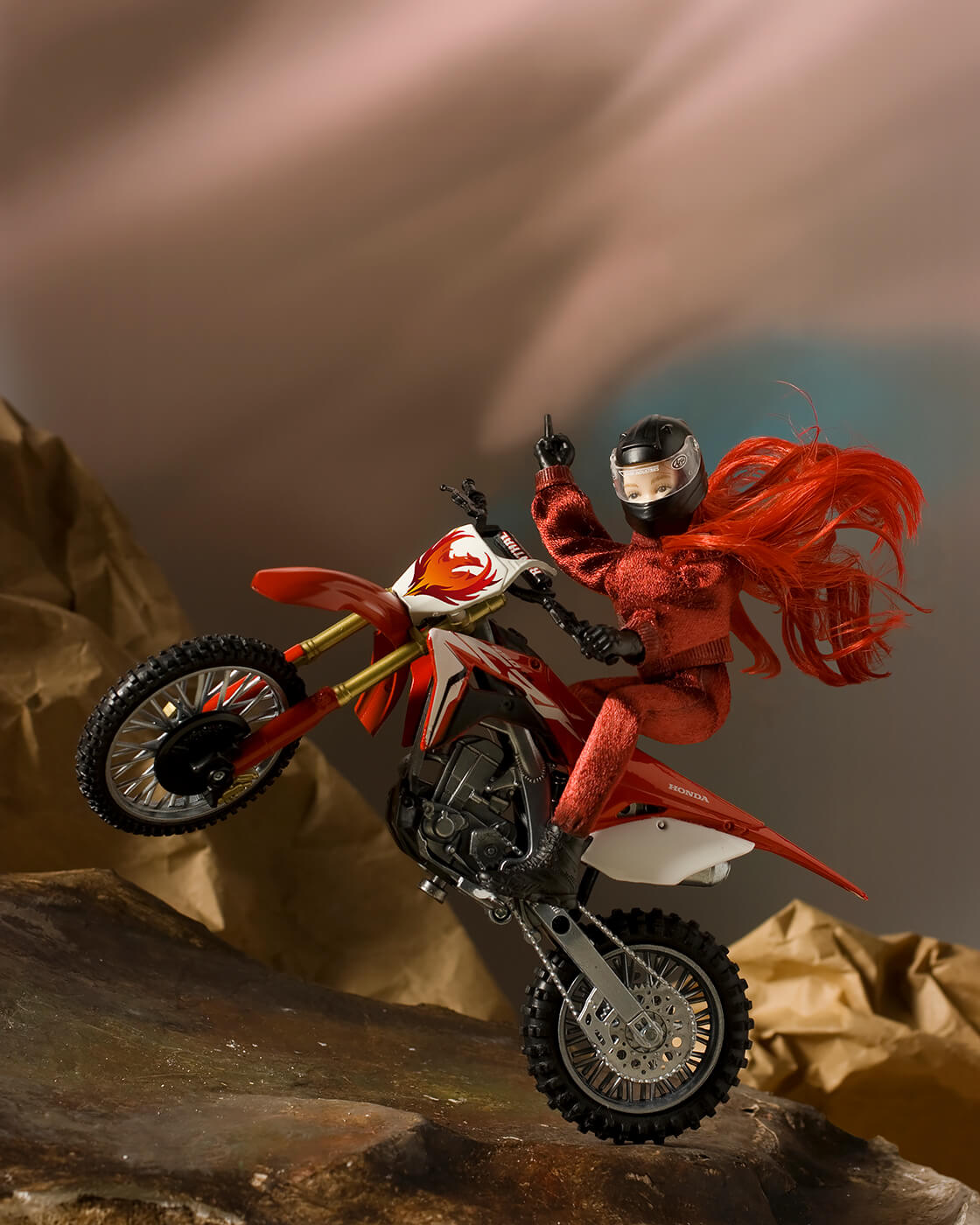 Mythos, power dynamics, gender roles, liberation, empowerment, and self-preservation are explored in this series, all with a deceptively playful overlay. Although I never depict actual people in my photographs, the human psyche is undeniably at the center of my work. I am fascinated by the psychological landscape, our search for meaning and the contradictions of human existence. So many stories, myths and artworks throughout history address these same concerns. I have found much rich source material to inspire my own interpretations for this series.