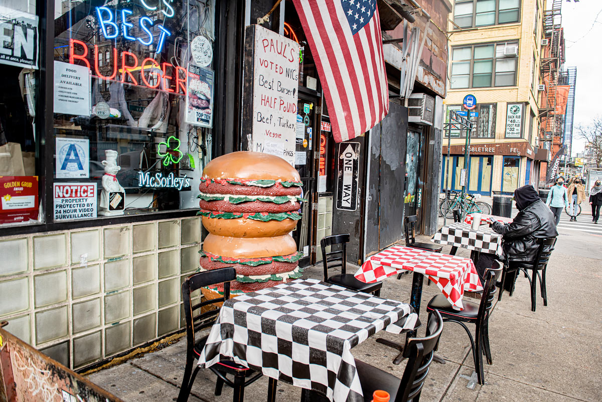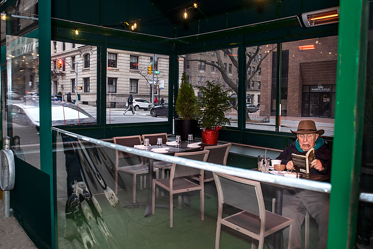 While many of the images evoke a sense of nostalgia, the second portion of the book is decidedly current, focusing on images taken in a one-year period from spring 2020 to spring 2021, highlighting the move to outdoor dining and further isolation due to the Covid-19 pandemic.