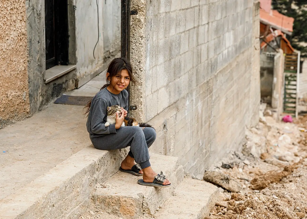 Comforting a cat following an IOF Raid, Jenin, December 2023 © Rehab Nazzal