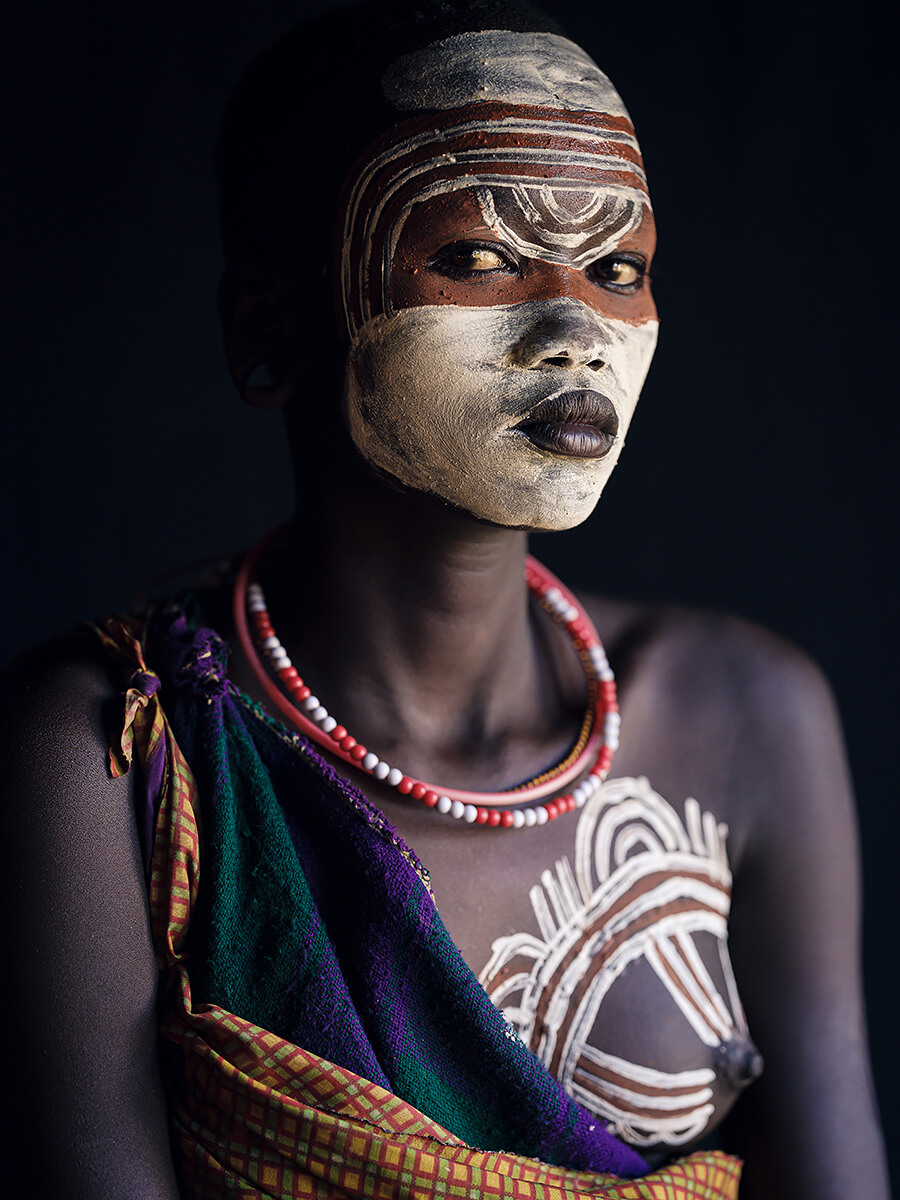 This project ("Proud Women of the Omo Valley") was taken inside a Suri tribe in the Omo Valley in Southern Ethiopia. The models were not dressed, simply recorded as is. No artificial lighting was used. The pictures with the black backdrop were taken within a dark tent with the light coming in from the entrance of the tent. In the Omo Valley, it feels as if time has no meaning. Days, months, seasons and years are irrelevant in this timeless corner of the world. Same goes for the concept of money, or the modern angst that comes with intellectual pursuit of the meaning of life and death. There, it's about life's essentials. It's about freedom and bare necessities. About being satisfied, joyful and surrounded by loved ones. I tried capturing the essence of what it means to be "stuck in time" which made me keep wondering whether they were left behind or whether the modern world is the one who made the wrong turn. This project taken in Dec 2019 feels more current than ever, especially in times like these with the Covid-19 global health crisis and the economic downturn, when we all got to spend some alone time and got back in touch with our most basic human needs and what "really matters".