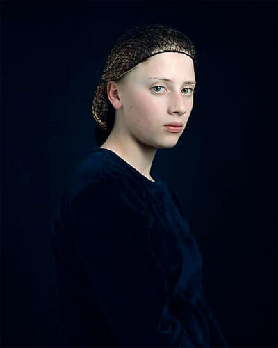 Hendrik Kerstens' (1956) oeuvre consists of a consequent sequence of portraits from his muse, his daughter, each time with a different angle, meaning or purpose. In the hemisphere of the radically realist paintings of the Dutch Golden Age, Kerstens explores the photograph as a surface, a platform to study contemporary ordinary objects and its meaning in historical tradition. With his typical selection for down-to-earth forms of headwear, from a napkin, a wet towel, spheres of lace to folded aluminium foil, he recalls how daily life has always been an integral subject of art, whether in the 17th or in 21st century.