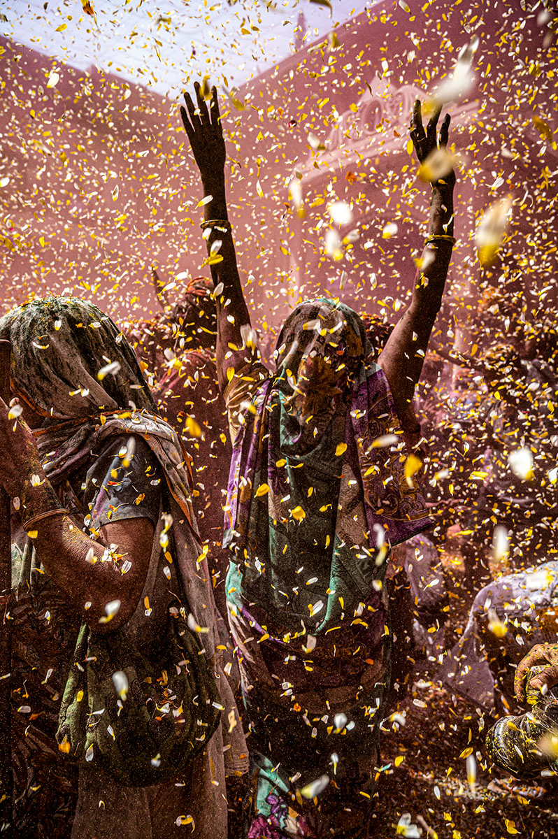 She left her family in Bengal and came to the Widows Ashram in Vrindavan after her husband’s death. Many others like her in the room have either been abandoned by their families or have decided to stay away from the societal pressures and people ostracizing them. Breaking the age-old rigid Indian tradition, these widows celebrate Holi, the vibrant festival of colors at the ancient Gopinath temple. Soaked in colors, they throw rose and marigold flower petals at each other and dance with joy. It is a blissful experience for all. It is mesmerizing to see such a sight. Their white saris turn bright and colorful. It is like getting revived in the most tender way."