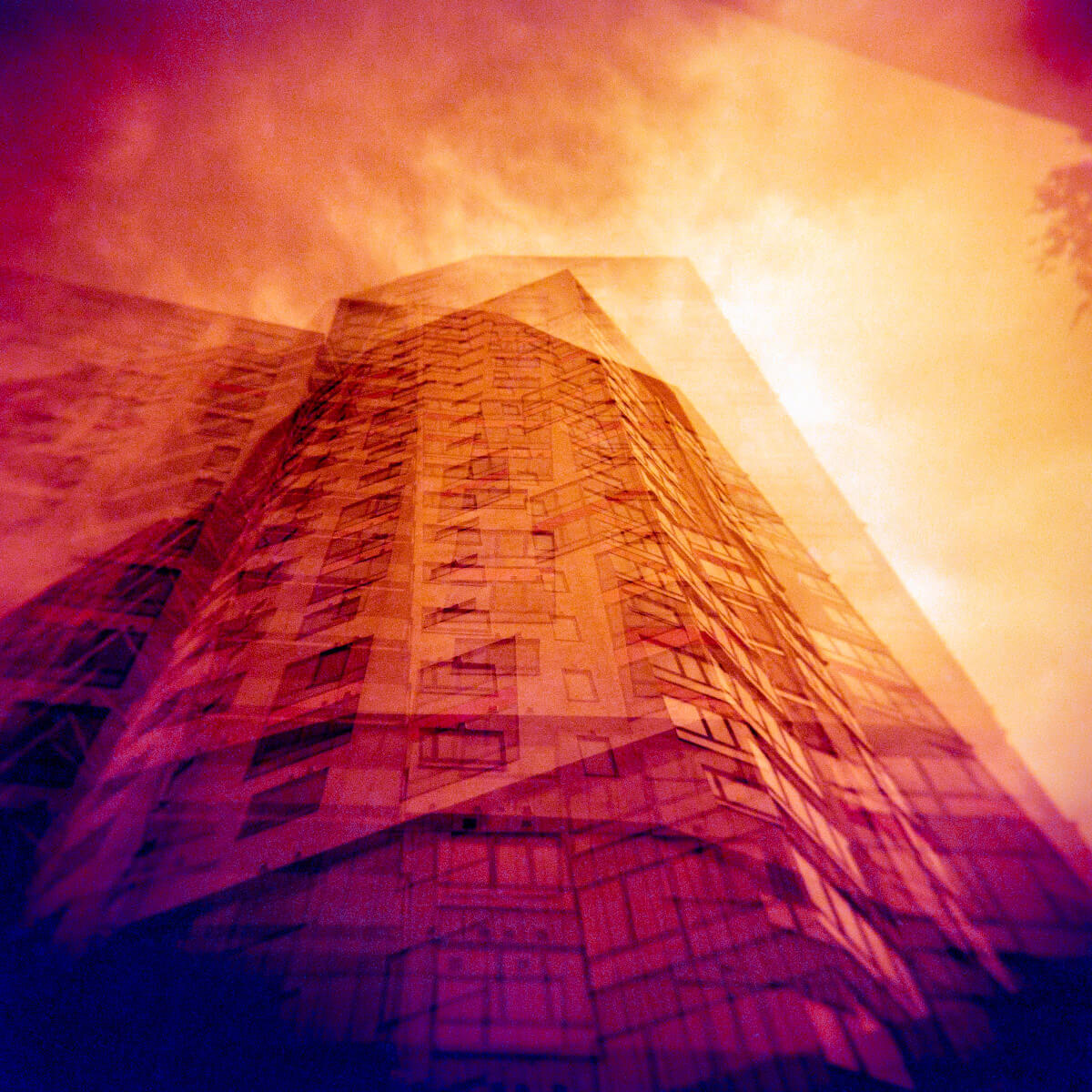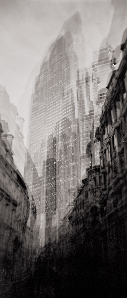 Captured on my walks to and from the train station and the office, timed so that the early or late light gives scope for multiple exposures on my plastic, zero control film camera. I try to ignore the “science” of photography and absorb the potential using the lights, lines and shapes to create something recognisable but arresting.