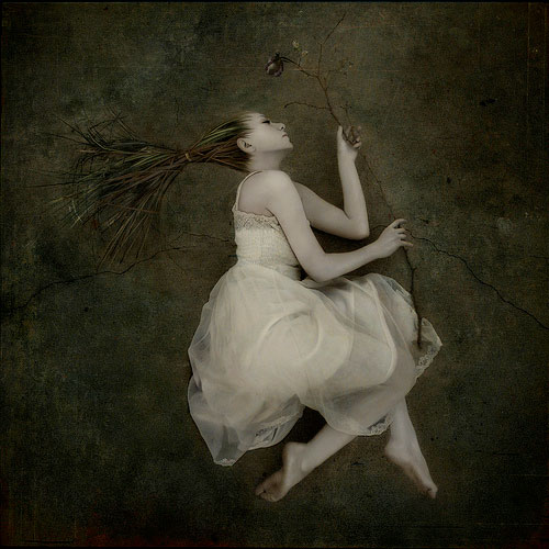 From www.mymodernmet.comCalifornia-based photographer Trini Schultz, aka Trini61, explores new worlds through her lens filled with haunting and, at times, romanticized portraits of people with their own captivating narratives. Time stands still in each of her surreal images as wafts of dust billow around a mysterious man, floating umbrellas fill the sky, and a rainstorm of rocks are caught in midair like weightless aerial objects. The fine art photographer's portfolio boasts a fantasy-driven collection that exposes an expressive beauty in the uncontrollable nature of her imagined worlds. There's an engaging charm about the photos that are both intriguing and captivating. With the help of her family, who often serve as her willing models (including a husband who wound up breaking his foot while performing a stunt for a photo shoot), Schultz is able to bring her creative visions to life.