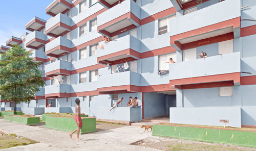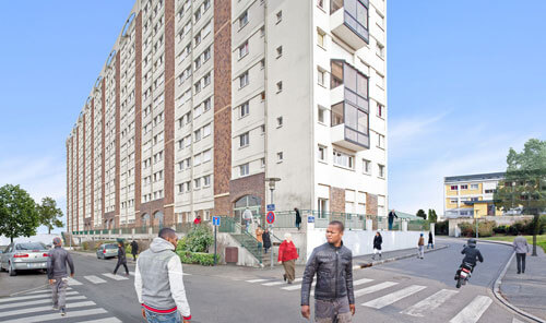 The Here Soon project transposes reality from everyday city life into the aesthetic of computer graphics, which aim to showcase high-quality real estate projects. The pictures of the series reproduce the codes of those fictitious representations of reality: contrasts are light, shadows are reduced to a minimum, and all that stands between the spectator and the architectural project – trees, vehicles, passers-by and so on – is shown in transparency. Nevertheless, the frame leaves place for writing on the walls, laundry hung out to dry, abandoned objects, trash – everything that bears witness to a civilization that has left its mark on the place that it inhabits. The presence of the local residents also calls attention to their singularity, their paths, and their relationship with their surroundings. Therefore, the emergence of a concrete memory of places contradicts the universal and potential value of images.