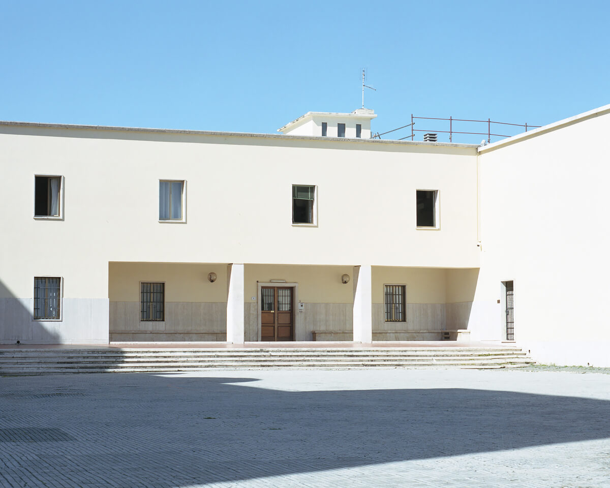 The works of Wiktoria Wojciechowska are juxtaposing the fascist architecture - undefined corners of streets, scattered walls, and remains of fascist sculptural iconography - and the portraits of recently arrived migrants. As they wander through a temporarily deserted city, occupying the scene of a petrified ideology, the public space, they reveal a striking contrast with this ideology embodied in the architecture.