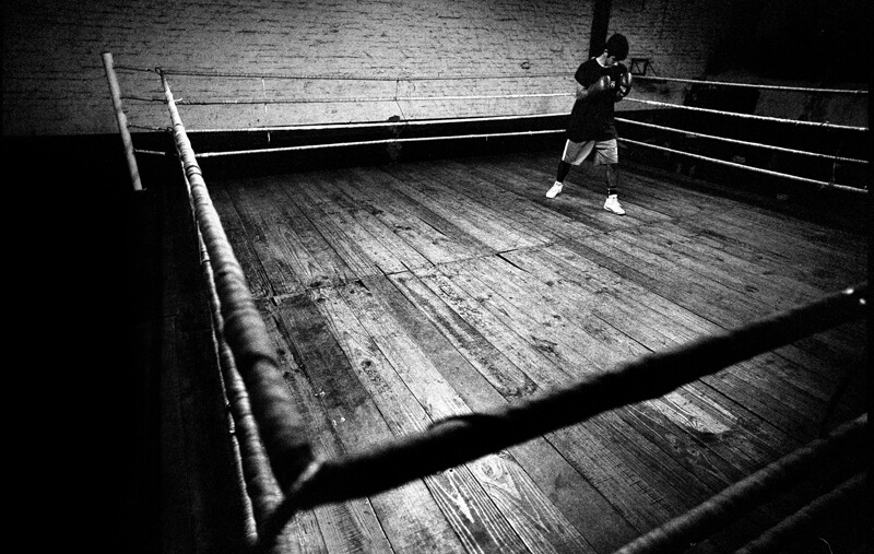 Ropes, wooden planks, nails, torn carpets, peeling walls, worn-out shoes, feet, gym bags, towels, robes, sacred images, iron stairs, neon lights, grimaces of pain, laughter of victory. Boxing.