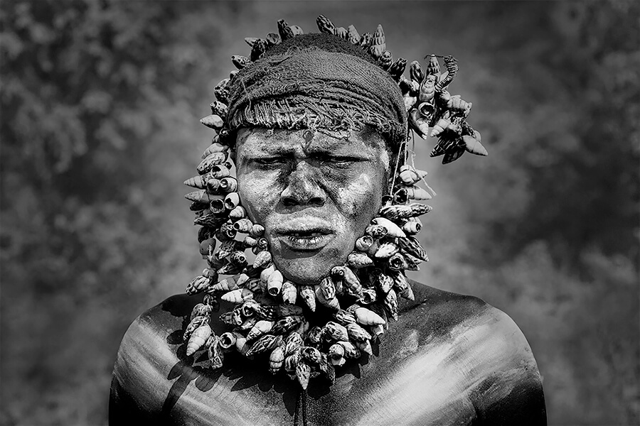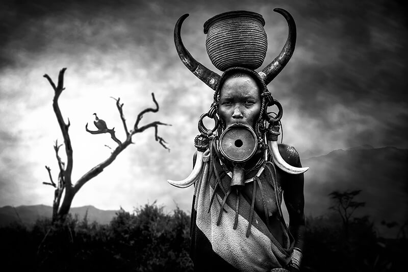 The African tribe of Mursi people is isolated in Omo valley - South Ethiopia near the border with Sudan. They are one of the most fascinating tribes in Africa with their lives being a combination of brutal reality and amazing beauty. What was really appealing to me, as a photographer, was to capture and recreate the perplexing nature of their culture and way of life. Suffering from extreme drought in the past few years has made their life cruel and sometimes dangerous, but has not left a single mark on their traditions. Living among them gave the sense of extreme authenticity and in the same time felt like an illusion. Their faces filled my insatiable passion for capturing pure, untouched souls of a culture on the brink of extinction."
