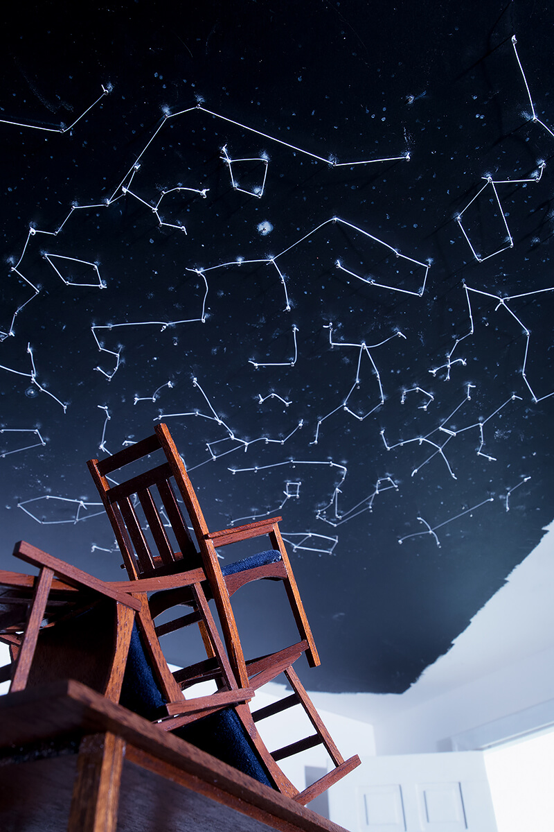 Bill Finger is a Michigan based artist whose work combines sculpture and photography. Handcrafting each element, he constructs and then photographs miniature dioramas. Each image is imbued with a sense of cinematic narrative that reflects twenty years working around film sets. By mimicking the filmmaking process he is able to create a miniature construction of a constructed reality.
